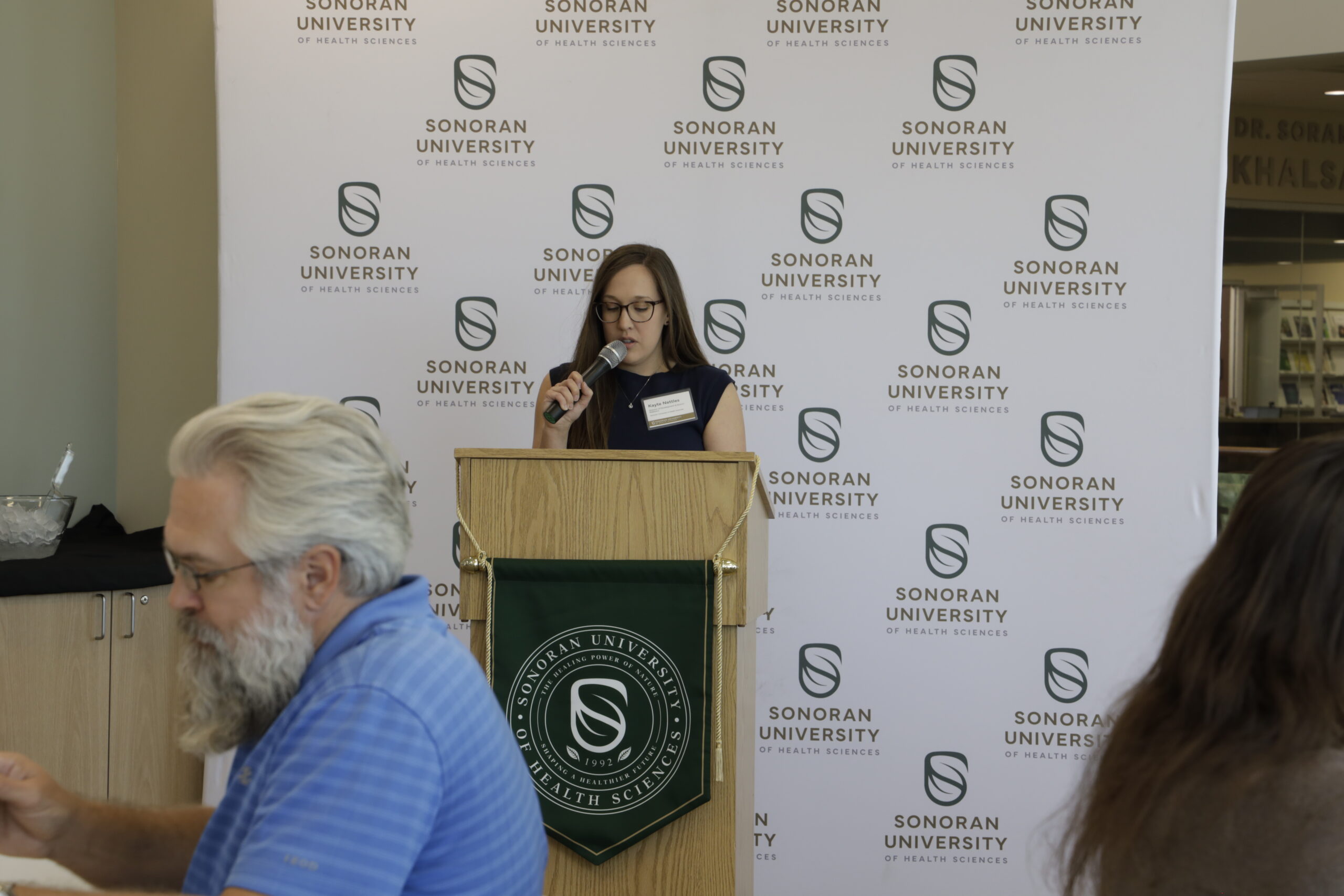 ND student, Elizabeth “El” Rapacz, SGA Vice President of ND Affairs and President of the Applied Kinesiology Club, gave a moving speech about her journey to naturopathic medicine and how receiving the Dr. Yong Deng and Mr. Andrew CG and Dr. Ruth Tan Lim scholarships are positively impacting her education.